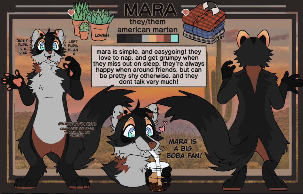 nice to meet you, im waywardweasel, or tetris!I'm a furry artist hailing from the states, and have been drawing since I could pick up a pencil. I use a Gaomon M10K Pro to draw, and use Medibang and MS paint as a program for most my pieces.My fursuit is by @molinloveqinghe ! Go show them some love!
